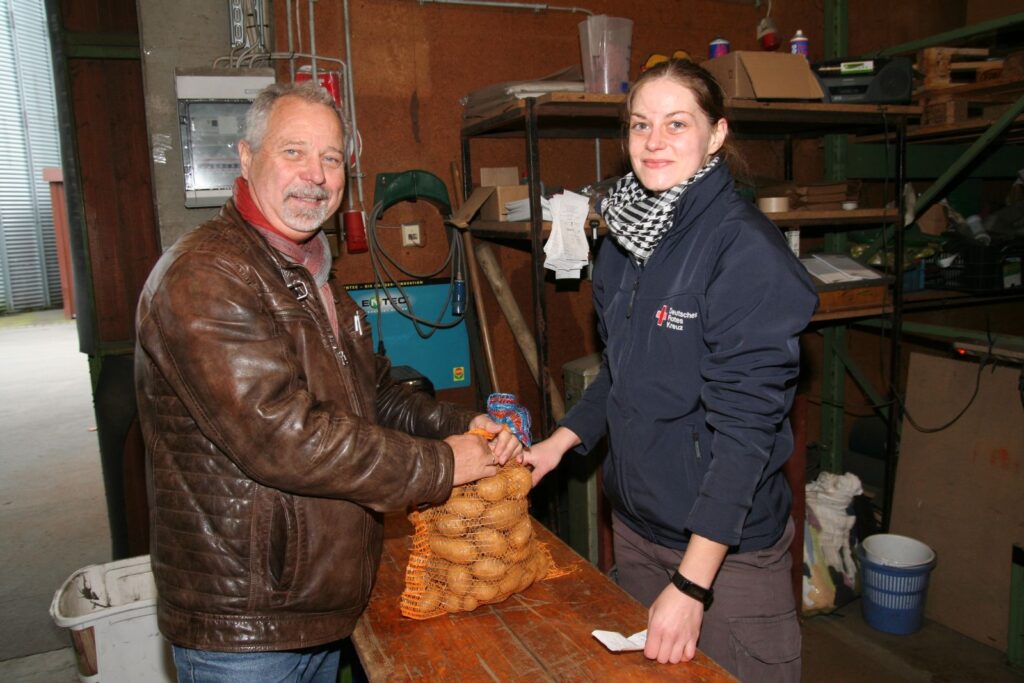 Damit nocheinmal mehr, als im letzten Jahr. Unsere Mitglieder hatten also alle Hände voll zu tun: Altkleider wiegen, verladen und Stapeln sowie die vom Raiffeisen gesponsorten Kartoffeln wiegen und an die Spender der Kleidung ausgeben.